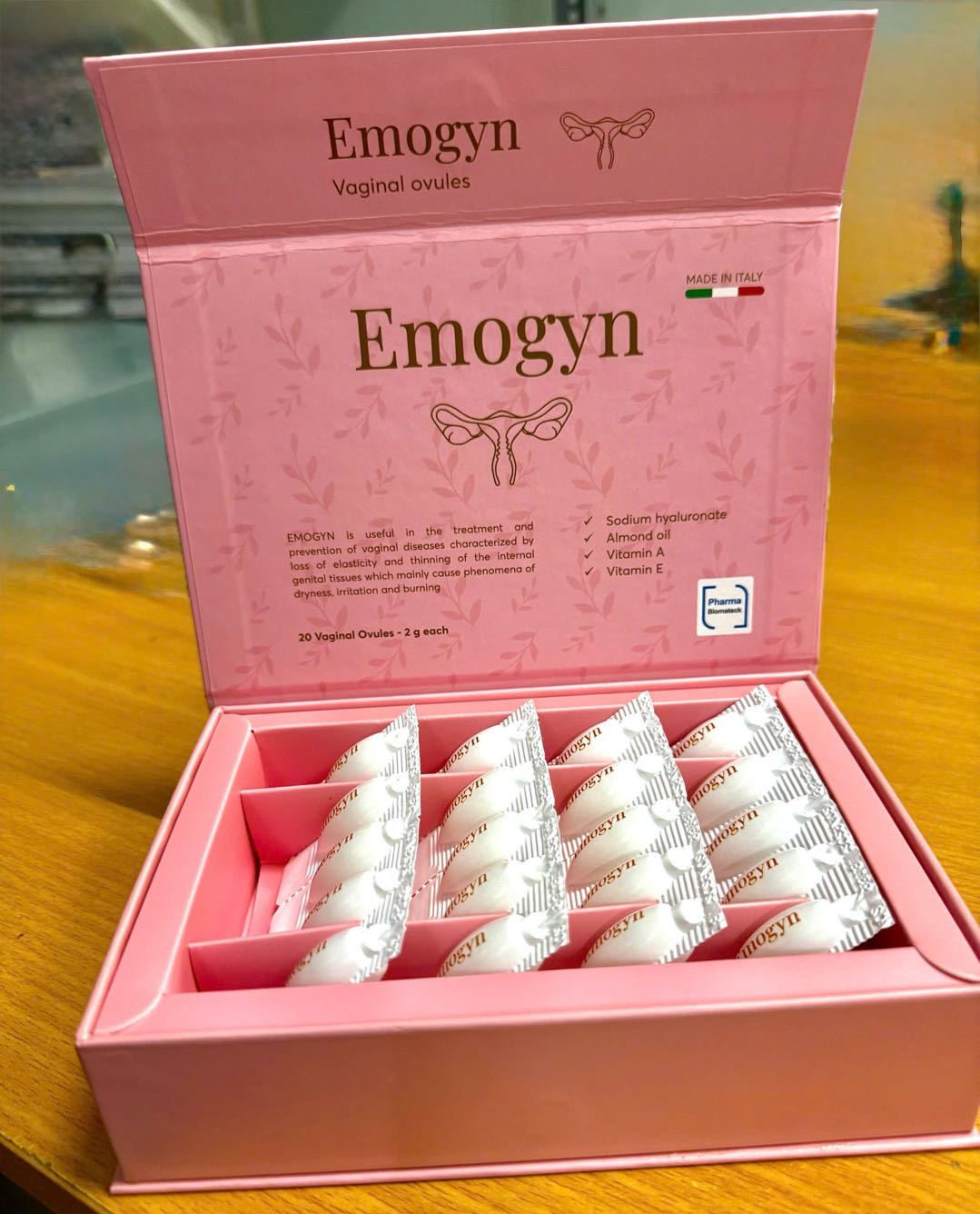 EMOGYN rất hữu ích trong việc hỗ trợ điều trị và phòng ngừa các bệnh về âm đạo do mất tính đàn hồi và mỏng của các mô sinh dục bên trong mà chủ yếu gây ra hiện tượng khô, kích ứng và nóng rát. Nhờ sự hiện diện của Axit Hyaluronic có trọng lượng phân tử thấp, Vitamin A và Vitamin E, EMOGYN thúc đẩy quá trình bôi trơn và duy trì mức độ hydrat hóa thích hợp của niêm mạc âm đạo, làm giảm cảm giác khó chịu vùng kín.